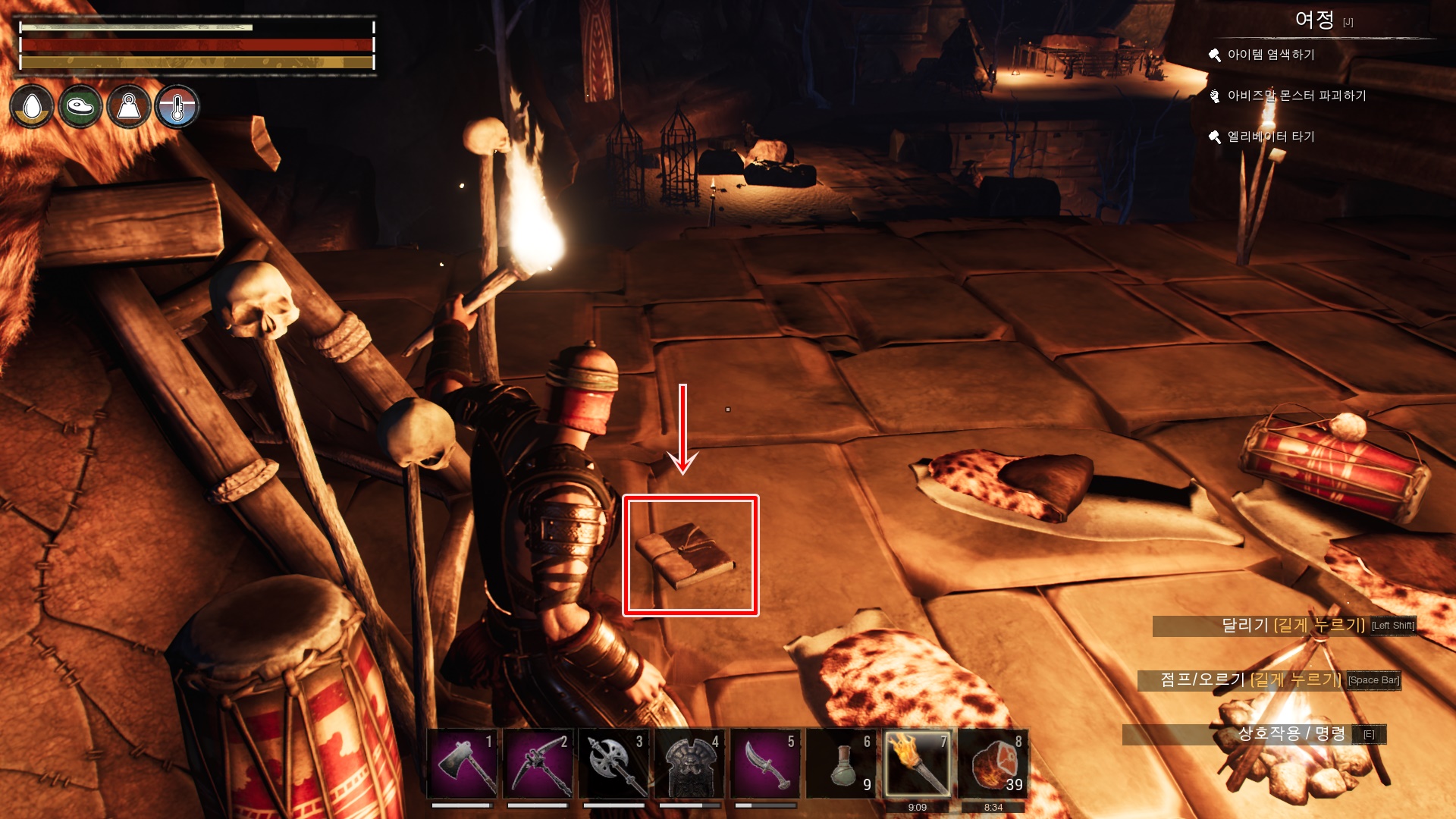 [붉은 어머니]뒤쪽에 보시면 나무상자가 있고 그 뒤쪽으로 작은 유물 상자에서 [힘의 조각]을 획득하실수 있습니다. |
