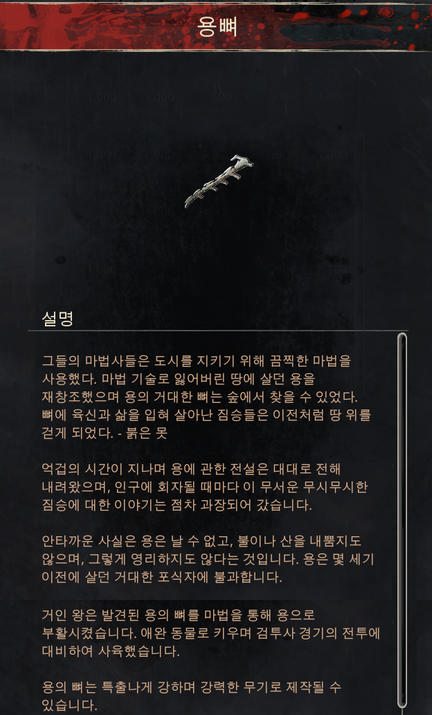 뿔피리,흑요석,악마의 피,모래괴물의 웅담,상아,,용뼈,용뿔,금속성운석막대 사진