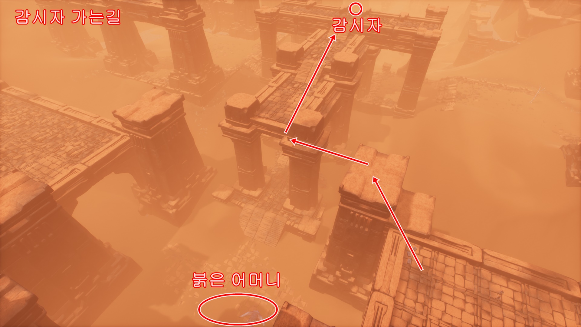 위 사진의 2번에 위치해 있으며,처치시 [힘의 조각]을 획득하실수있습니다. 기둥을 타고 올라가야할정도로 높은곳에 존재하며, 붉은어머니가 보이는 정면 계단 위쪽 구조물쪽에 위치하고있습니다. ![]() |