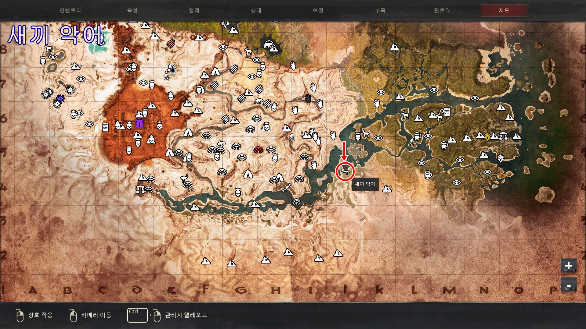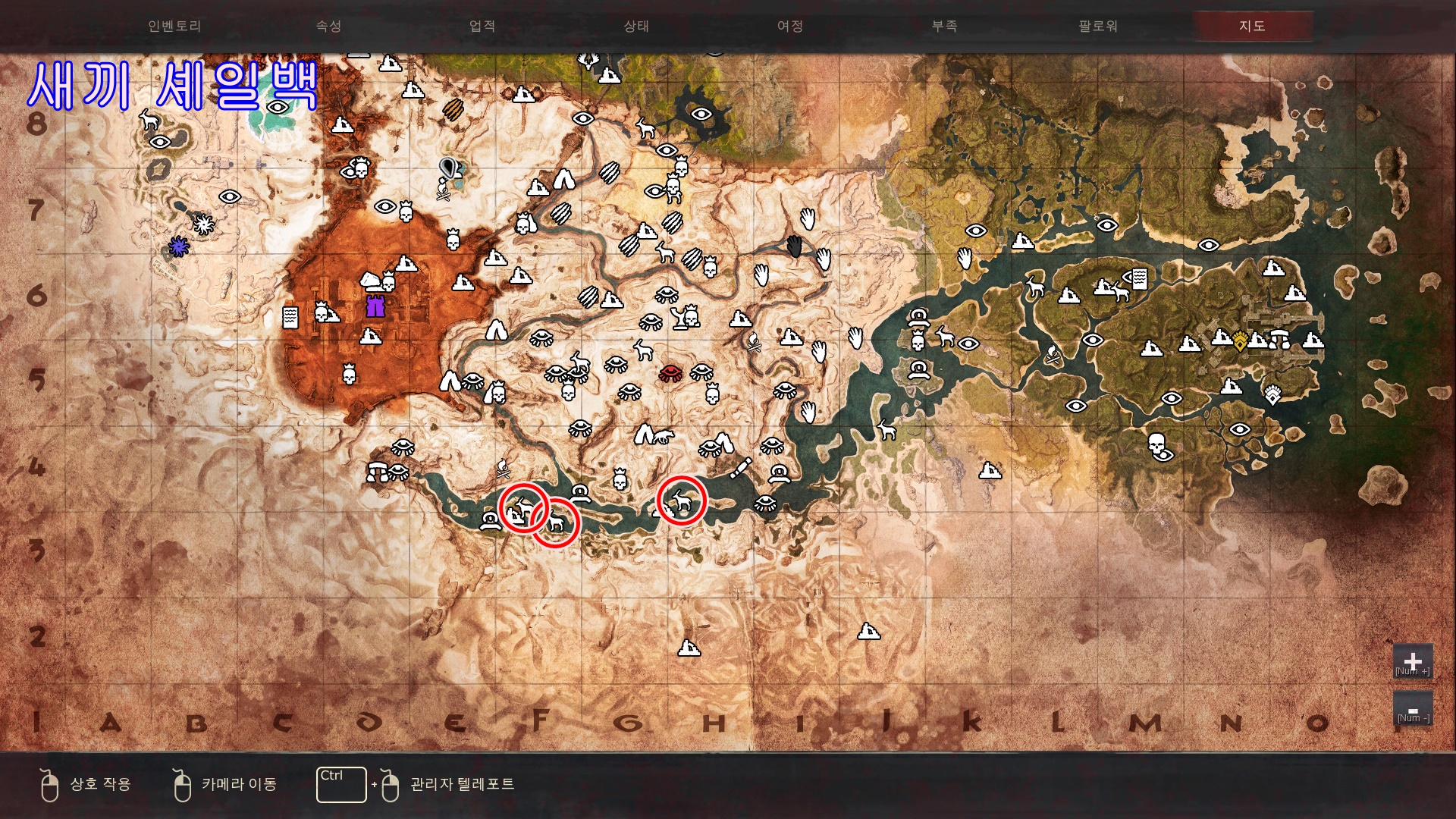 ※표시된 지역은 새끼가 나오는 지역중 일부만을 표시한 것이며, 표시한 장소외에도 많은곳에서 등장하니 꼭 표시된곳에서만 찾으실 필요는없습니다.