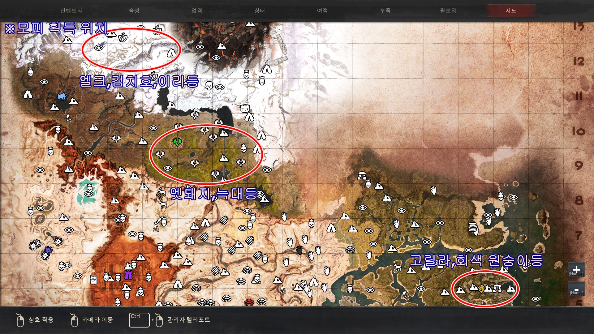 ※새끼 코모도의 경우 스폰위치를 못찾아서 성체 대신 새끼 코모도가 리스폰되는곳을 표시했습니다. 해당 표시된 지역 주변에 코모도가 1마리씩 떨어져서 스폰되있으니 한번 쭉돌아보시고 없으시면 다른곳가셨다가 다시와서 확인해주세요.