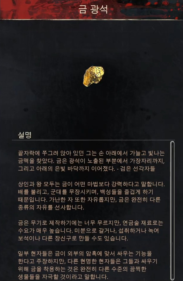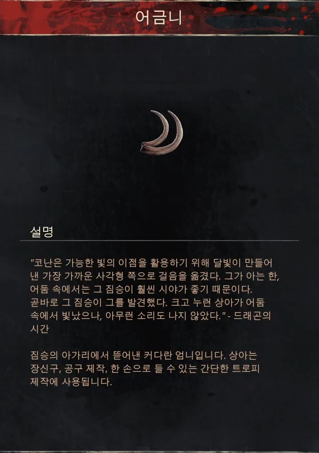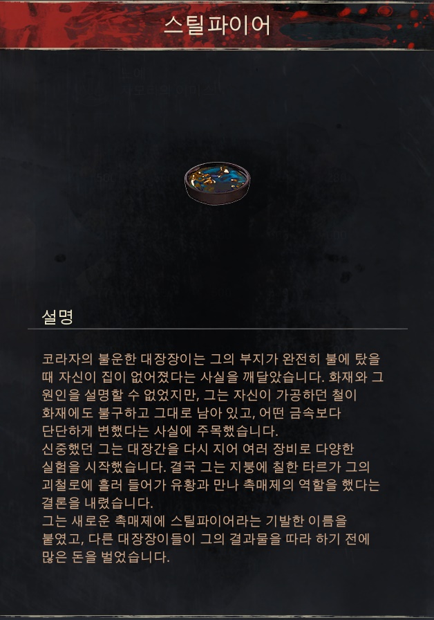 획득 방법 1.[무명 도시]주변의 특정 보스들을 처치할시 획득 가능합니다. 2.[붉은 어머니]보스의 뒤쪽 작은 상자에서 획득가능합니다.