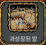 [과성장된 밭] ●4일에 한 번 허수아비 하나 소환. ●전투 중 비어있는 타일에 칼날 풀밭 소환. ※[마을?]에 인접한곳에 [밀밭]을 설치할시 [과성장된 밭]으로 변화합니다.