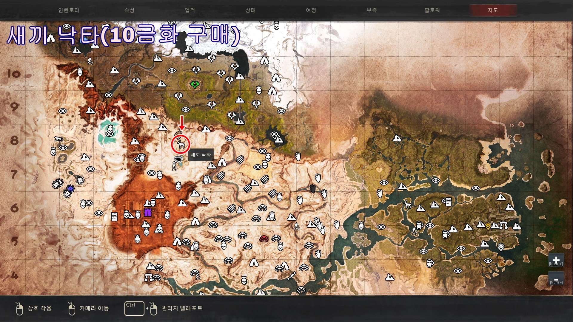 위쪽 사진의 위치에 가시면[이방인 쇼나]에게서[금화]10개를 주고[락노즈 알]을 구매하실수있습니다.